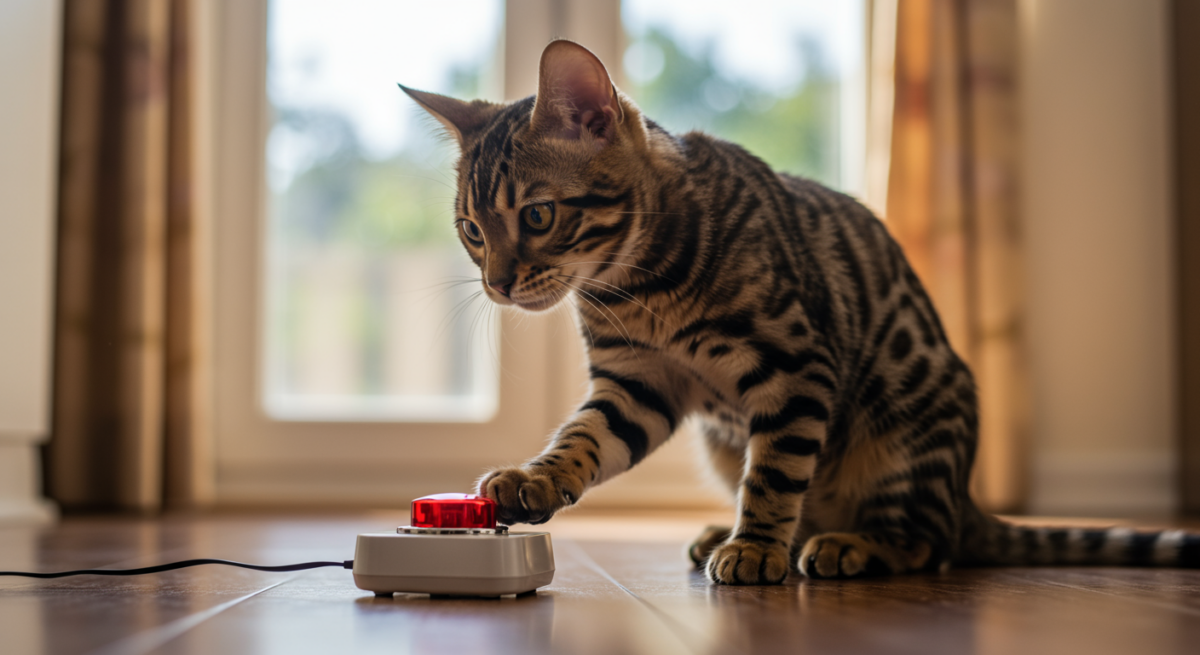 Le clicker training est la méthode d’apprentissage la plus efficace pour le Bengal. Le principe est simple : un petit boîtier émet un « click » au moment précis où le chat effectue le comportement souhaité, immédiatement suivi d’une friandise. Le chat associe rapidement click = récompense, et cherche activement à reproduire le comportement qui déclenche le click.